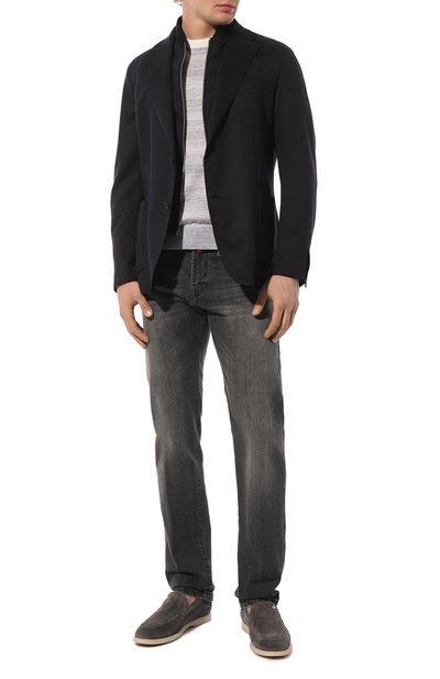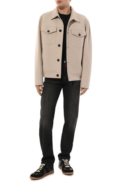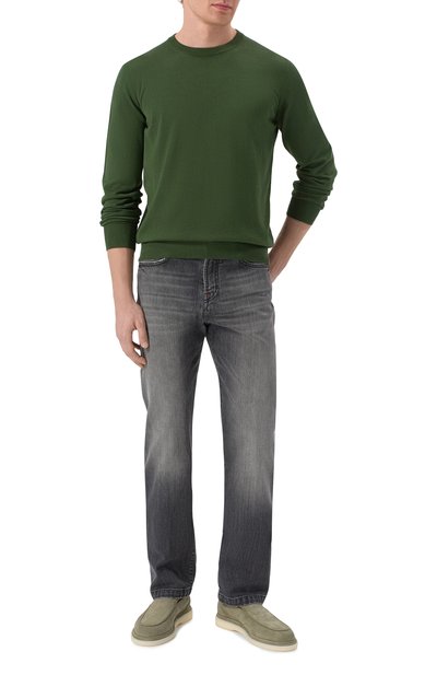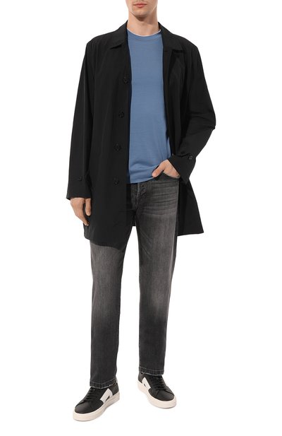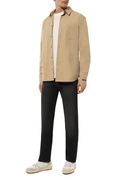 Выбеленные джинсы с декоративными заломами и небольшими потертостями выполнили из хлопкового денима стрейч. Модель с пятью карманами украсили брендированным патчем на поясе, а на одной из шлевок вышили фирменный логотип.