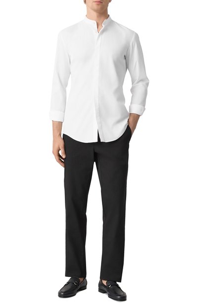 Сорочку Kenno кроя Slim fit выполнили из хлопковой ткани с шевронным жаккардовым узором. Модель с воротником кент и фигурным низом подойдет для создания формальных образов.