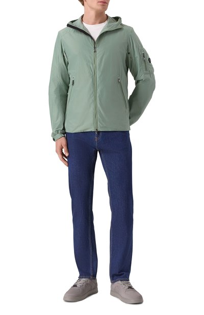 Куртку P-Com с капюшоном и регулируемыми патами на рукавах выполнили из влаго- и ветронепроницаемого мембранного материала Gore-Tex®. Модель с сетчатым подкладом дополнили боковыми карманами и вертикальными нагрудными с герметичными молниями.