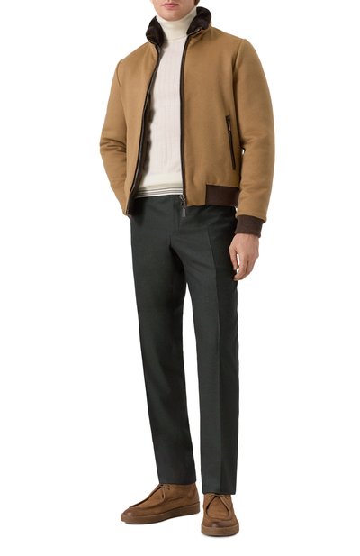 Дезерты на широкой вспененной подошве выполнили из гладкой кожи. Ботинки окрасили в готовом виде вручную, создав на поверхности патину.