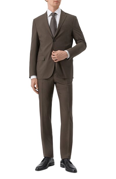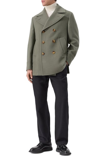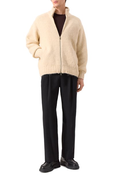 Дерби с рельефным швом вдоль миндалевидного мыса выполнили из гладкой кожи. Пару установили на широкую подошву с прошитым рантом и глубоким протектором.