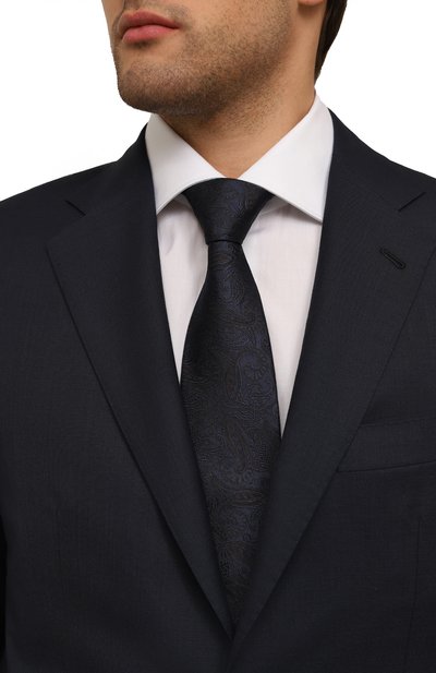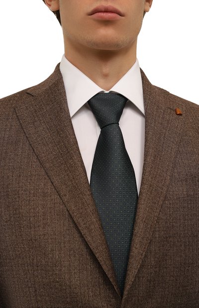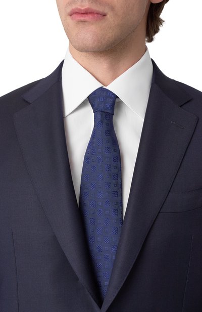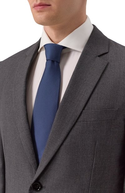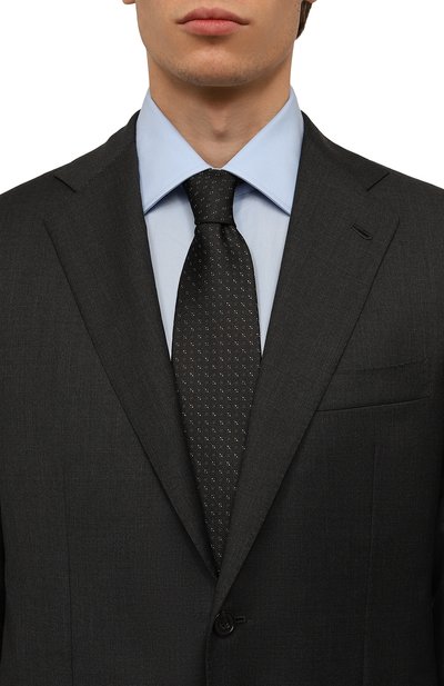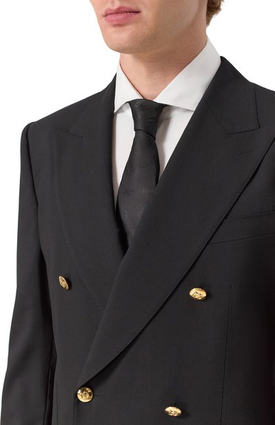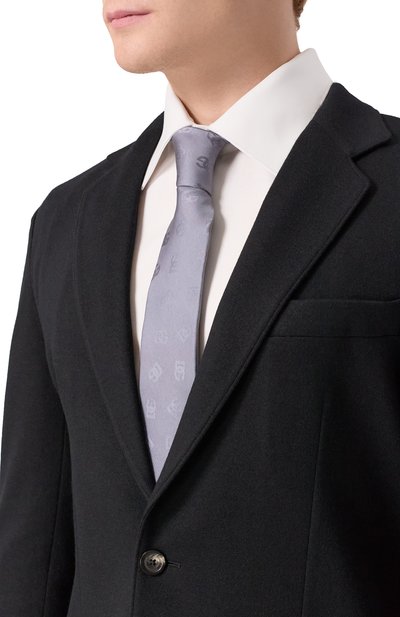 Для создания узкого галстука выбрали шелковый твил с жаккардовым узором в виде повторяющейся монограммы DG. Чтобы аксессуар хорошо держал форму, его дополнили подкладом из такого же материала.