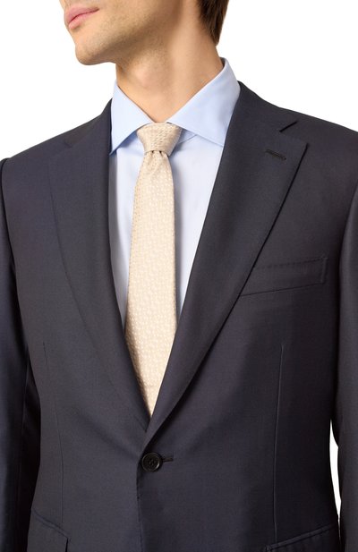 Узкий галстук из шелкового твила завершит элегантный образ smart casual. Чтобы аксессуар не перекручивался, его дополнили подкладом и закрепили края эластичным задним швом.