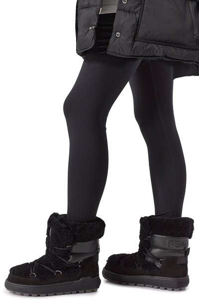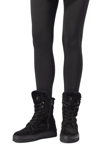 Ботинки Arosa на массивной протекторной подошве с фигурным рантом выполнили из замши. Модель с объемным кантом из овчины и шерстяной внутренней отделкой украсили фирменной нашивкой на язычке.