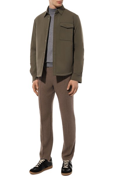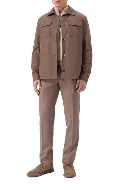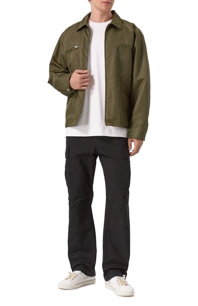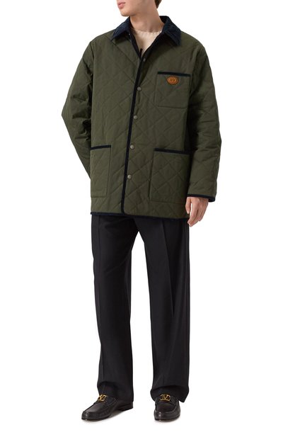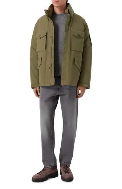 Куртку с клетчатой фланелевой подкладкой выполнили из хлопкового твила. Оттенку вельветового воротника вторят брендированная нашивка спереди и овальные заплаты на локтях. Модель на молнии, прикрытой кнопочной планкой, дополнили внутренней кулиской и парой внешних карманов с двумя входами.