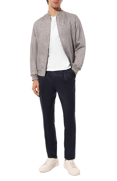 Брюки кроя Slim fit выполнили из тонкой фланели на основе шерсти первого пострига. Модель со стрелками дополнили регулируемым поясом-кулиской, боковыми и задними карманами.