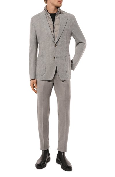 Брюки прямого кроя выполнили из тонкой шерстяной ткани. Модель с двумя парами карманов и стрелками удачно дополнит образ smart casual.