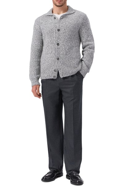 Брюки из шерстяной фланели подойдут как для непринужденного повседневного образа, так и для комплекта smart casual. Модель с четырьмя карманами дополнили эластичным поясом-кулиской, который регулируется шнуром с брендированными кожаными эглетами.