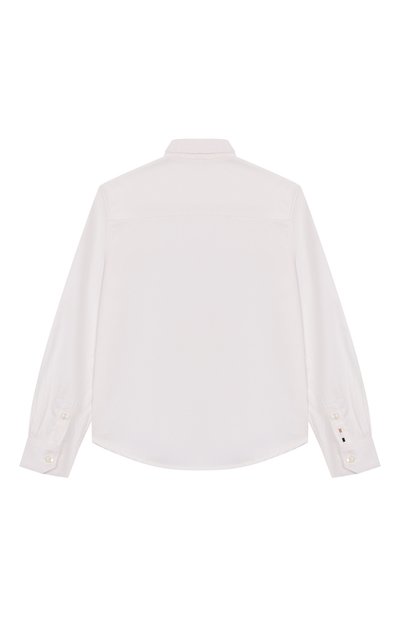 Рубашку со скошенными манжетами выполнили из чистого хлопка. Модель, застегивающаяся фирменными перламутровыми пуговицами, подойдет для создания школьного или торжественного образа.