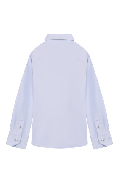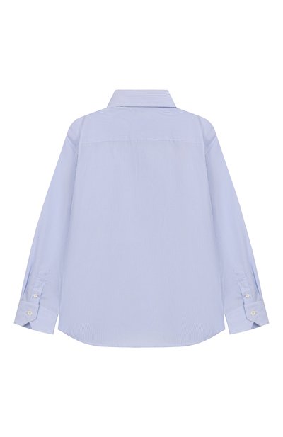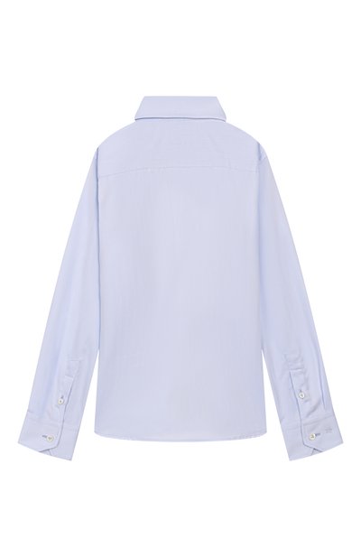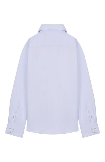 Рубашка со скошенными манжетами, воротником кент и нагрудным карманом органично дополнит школьный образ. Модель из хлопковой ткани с шевронным узором застегивается перламутровыми пуговицами.