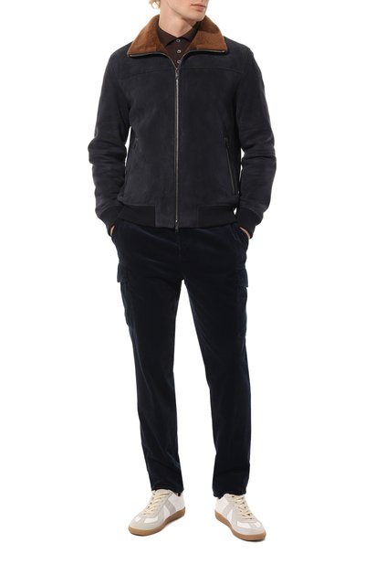 Брюки из вельвета на основе чистого хлопка окрасили в готовом виде. Помимо боковых и задних карманов предусмотрели накладные карго.