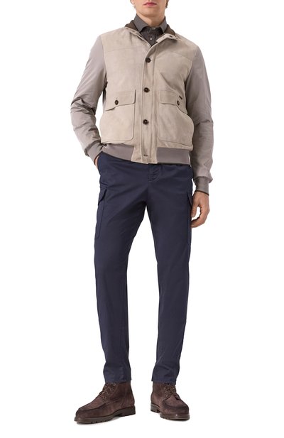 Брюки с эластичным поясом-кулиской и четырьмя карманами вошли в линейку Travelwear. Модель с декоративными защипами на коленях выполнена из хлопкового футера.