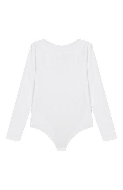 Для изготовления боди с кнопками в шаговом шве использовали хлопковый трикотаж стрейч. Спереди изделие украсили контрастной вышитой эмблемой Oval D.