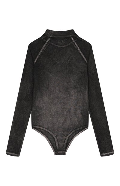 Для изготовления боди с кнопками в шаговом шве использовали хлопковый трикотаж стрейч. Спереди изделие украсили контрастной вышитой эмблемой Oval D.