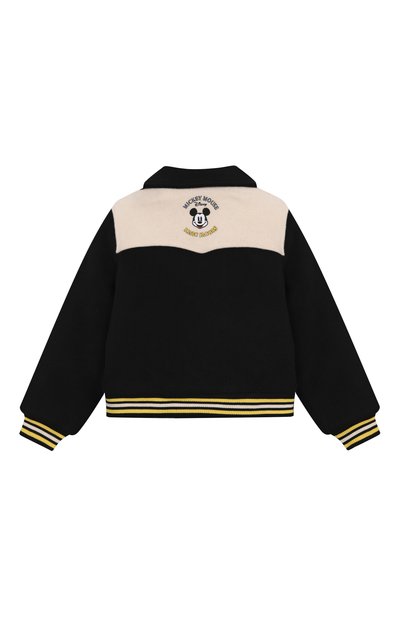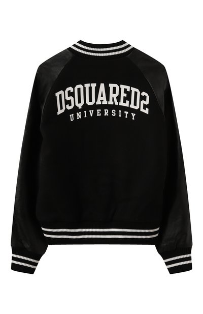 Утепленный бомбер из экомеха на основе полиэстера дополнили контрастными манжетами, поясом и воротником из ребристого трикотажа в полоску. Проймы и боковые карманы подчеркнули вставками из мелкозернистой экокожи в тон. На спинке вышили брендированное изображение медведя, а спереди – монограмму D2. Куртка с подкладом на основе вискозы застегивается кнопками.