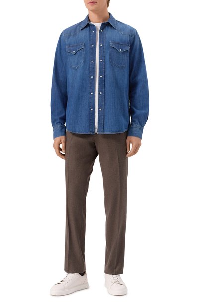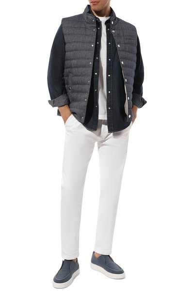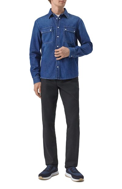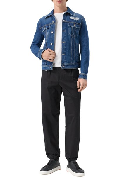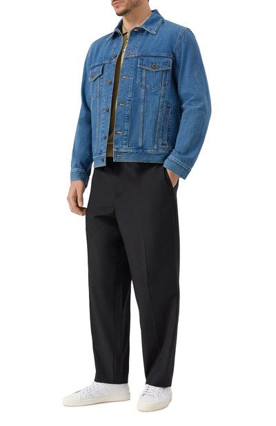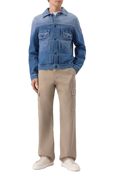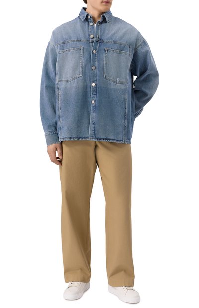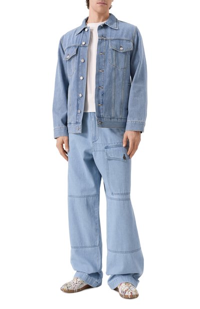 Для пошива куртки с двумя парами карманов использовали слегка выбеленный хлопковый деним с добавлением эластана. Пояс модели дополнили ремешками по бокам и брендированным патчем сзади.