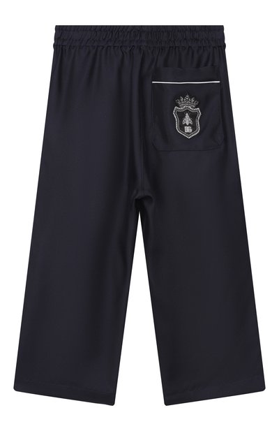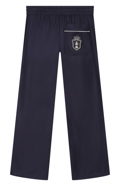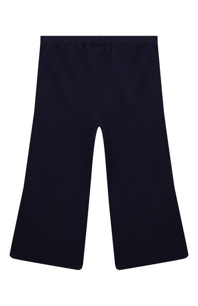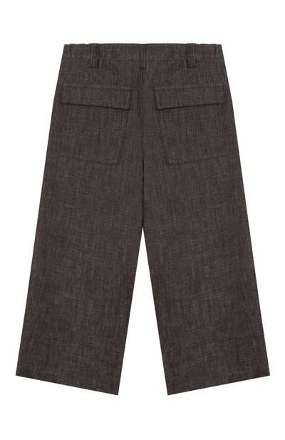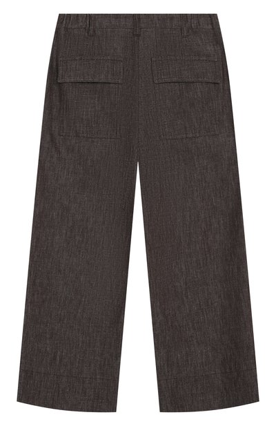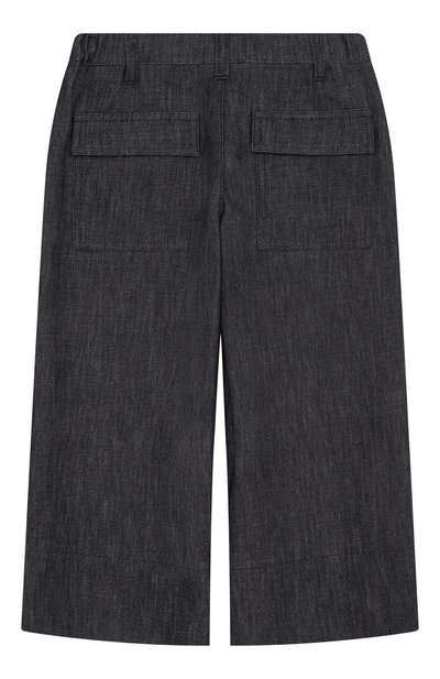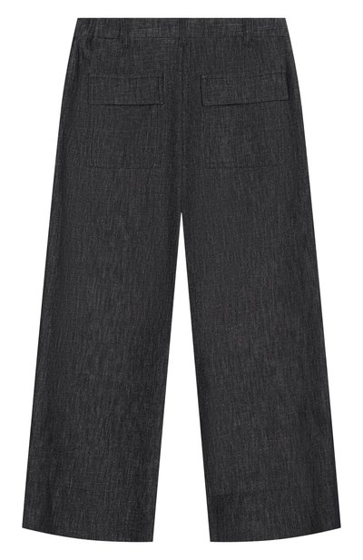 Широкие брюки с четырьмя карманами выполнили из денима Sparkling на основе хлопка и вискозы с добавлением нитей ламе. Две передние шлевки на поясе изделия украсили фирменными цепочками мониль.