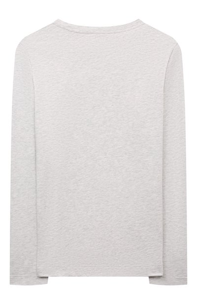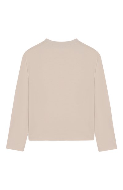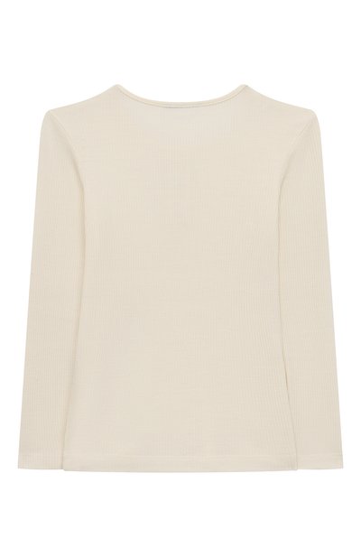 Лонгслив с круглой горловиной в рубчик выполнили из хлопкового джерси. Модель украсили полосками из цепочки мониль вдоль плечевых швов.