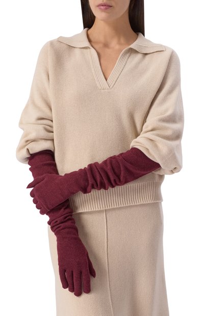 Для изготовления варежек использовали пряжу из чистого кашемира. Широкий эластичный отворот подчеркнули контрастным кантом с люрексом.