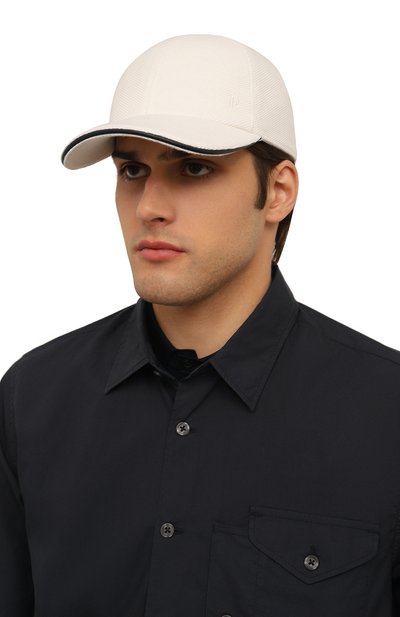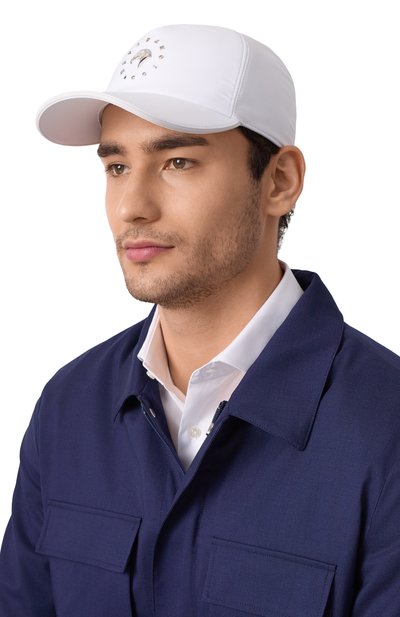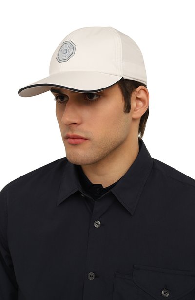 Бейсболку с регулируемым ремешком выполнили из водоотталкивающей японской микрофибры. Аксессуар украсили вышитым гербом Solomeo спереди и стежком в тон сзади.