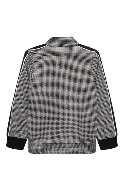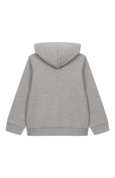 В коллекцию Armani Sustainability Values вошла толстовка из трикотажа на основе органического хлопка и полиэстера. Модель с графичным принтом дополнили однотонными вставками, а спинку и левую полочку украсили логотипами. Изделие с боковыми карманами застегивается молнией.