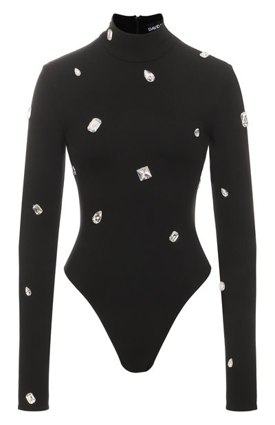 Боди Allover crystal выполнили из стрейчевой вискозы, усиленной нейлоном. Модель с потайной молнией на спинке и кнопками на шаговом шве украсили крупными кристаллами разной формы.