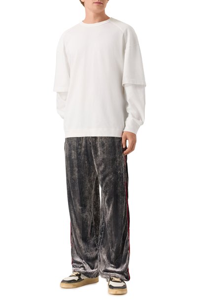 Брюки с широким эластичным поясом, боковыми и задним карманами украсили вышитой нитью в тон эмблемой Oval D. Для изготовления модели с абстрактным принтом использовали муслин из лиоцелла, полученного из древесины возобновляемых лесов.