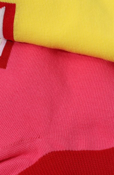Короткие носки выполнили из эластичной хлопковой пряжи с добавлением полиамида. Аксессуар с манжетой в рубчик украсили жаккардовым логотипом бренда. В комплекте — три пары изделий разных цветов.