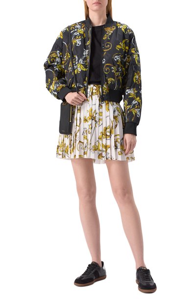 Плиссированную мини-юбку из полиэстера стрейч дополнили внутренними шортами. Эластичный пояс подчеркнули логотипом Vendome Script, с которым перекликается двойная полоса снизу.