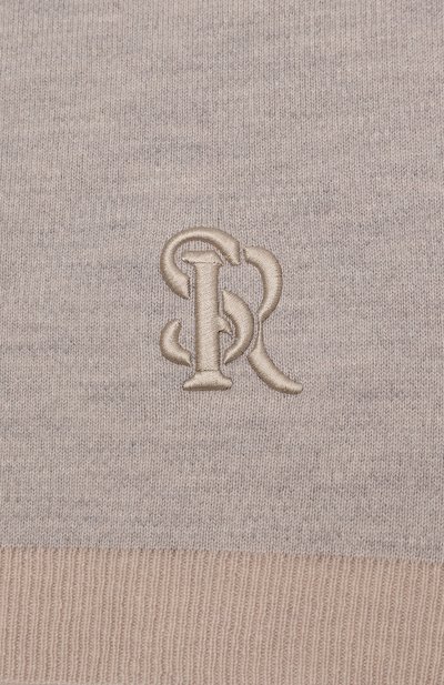 Шарф связали узором в широкий рубчик из чистой шерсти. Аксессуар декорировали круглым патчем фирменной эмблемой Royal Eagle.