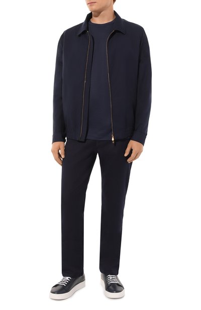 Футболку из шерстяного джерси с добавлением полиамида украсили крупной вышитой монограммой SR в тон. Фирменный декор поддержали небольшим логотипом марки на спинке.