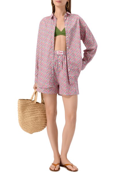 Шорты Francine выполнили из махрового хлопкового трикотажа. Модель с широким эластичным поясом украсили вышитым логотипом в тон канту на фигурном низе.