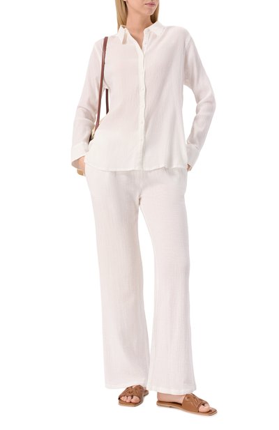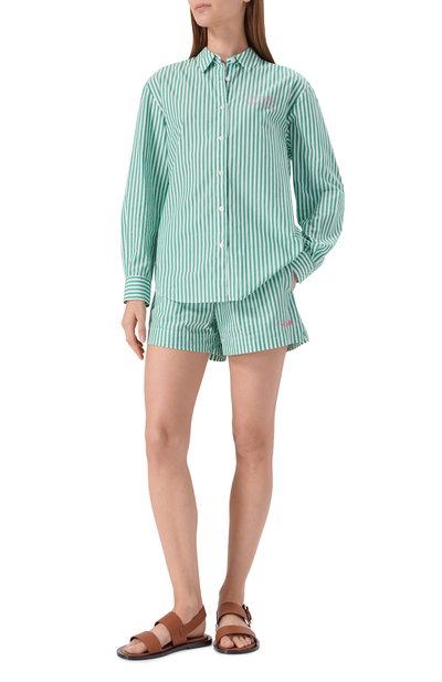 Рубашку Meredith с фигурным низом и закругленными манжетами сшили из льняной ткани с мотивом Bandanna. Модель со слегка спущенной линией плеч составит гармоничный дуэт с парными шортами.