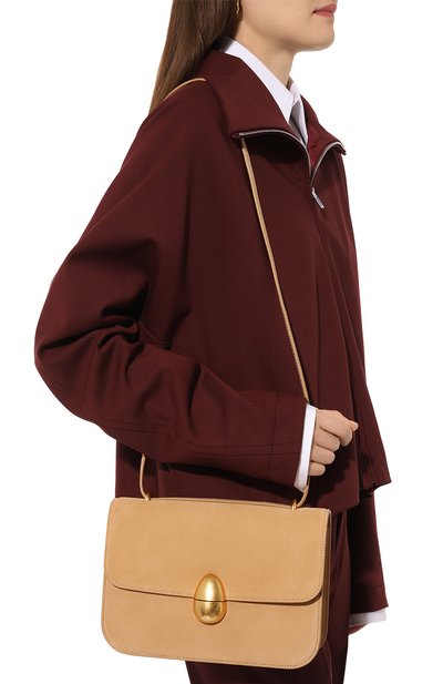 Сумка Vera с внутренним карманом и регулируемым кожаным ремнем сшита из бархатистой замши. Модель, застегивающаяся встречной молнией, украшена тисненым логотипом марки спереди.