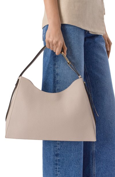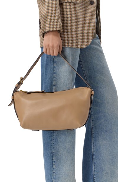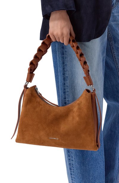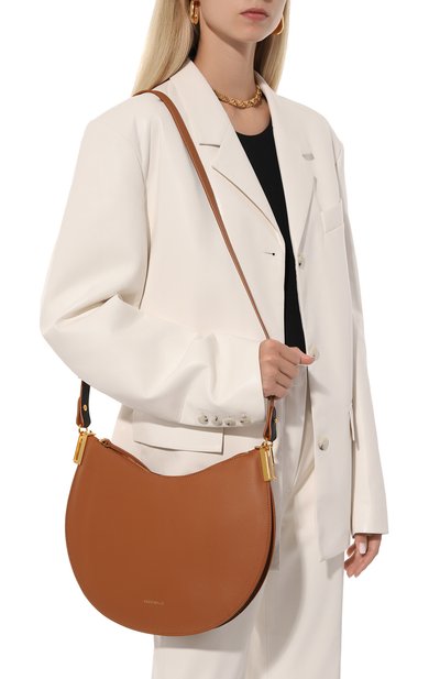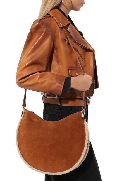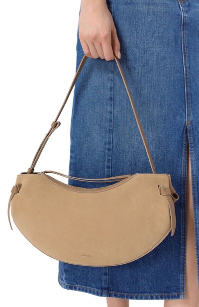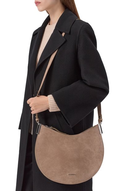 Сумка Vera с регулируемым кожаным ремешком и внутренним карманом сшита из замши. Аксессуар, застегивающийся встречной молнией, украшен тисненым логотипом марки спереди.