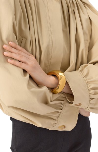 В коллекцию Bananas вошел браслет из латуни оттенка античного золота. Регулируемый аксессуар с тремя глидерами в виде связок бананов застегивается небольшим карабином.