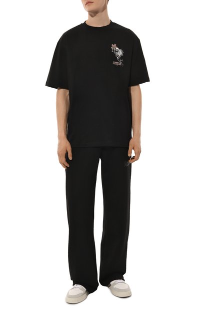 Футболку прямого кроя выполнили из хлопкового трикотажа. Модель с брендированным ярлыком на рукаве украсили спереди фирменным принтом с логотипом марки.