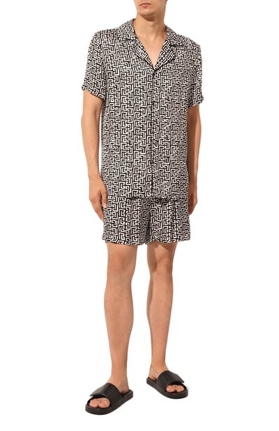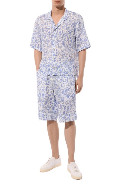 Шорты с принтом Majolica выполнили из махрового хлопка с добавлением полиамида. Помимо боковых карманов у модели с эластичным поясом-кулиской предусмотрели задний на молнии.