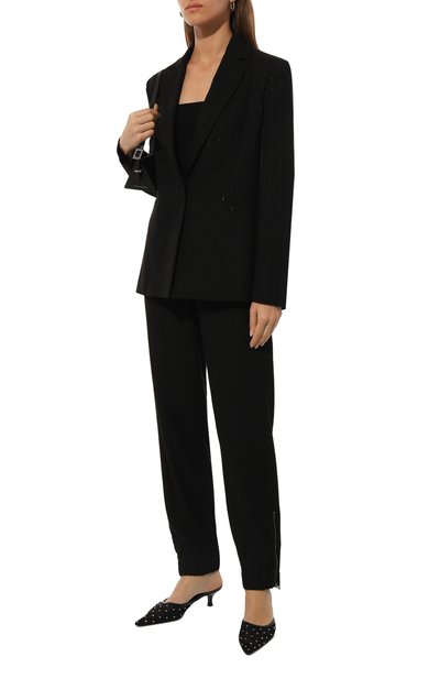 Мюли на подошве из телячьей кожи выполнили из овечьей кожи, сертифицированной LWG. Модель с перемычкой, как у вьетнамок, и брендированной стелькой установили на каблук kitten heel.