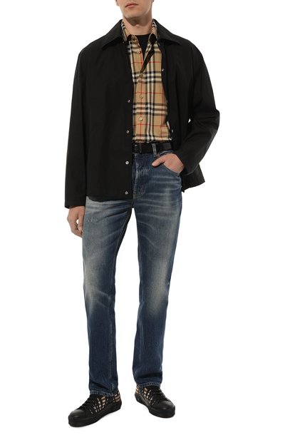 Кеды Terrace из телячьей кожи дополнили нейлоновыми вставками в знаковую клетку Burberry Check. Тему фирменной символики поддержали логотипом на подошве и патчем с эмблемой Equestrian Knight Design на язычке.