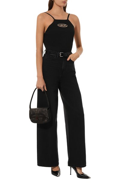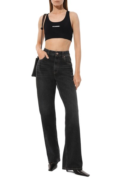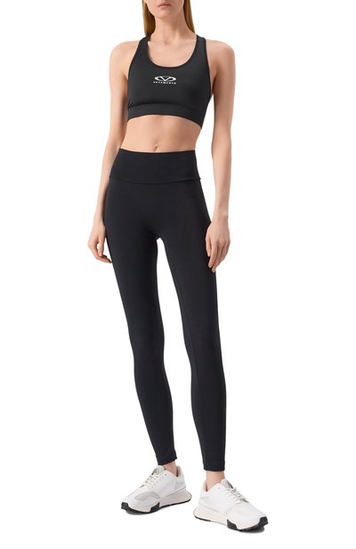 Бесшовный кроп-топ с эластичным поясом выполнили из смесового трикотажа стрейч на основе переработанного нейлона. Спереди модель украсили нашивкой с эмблемой марки.