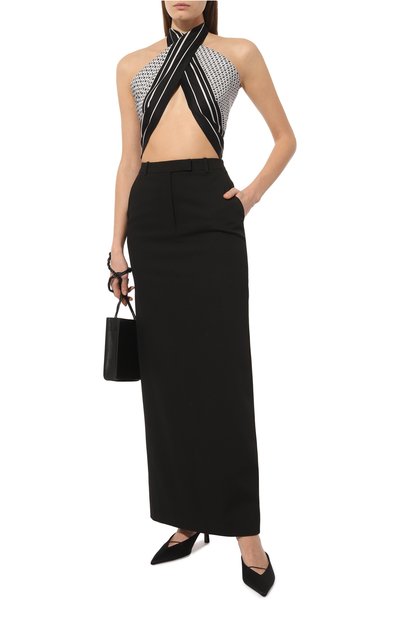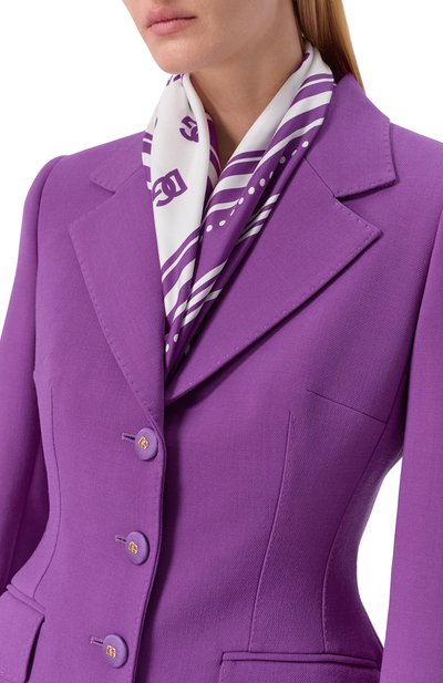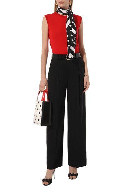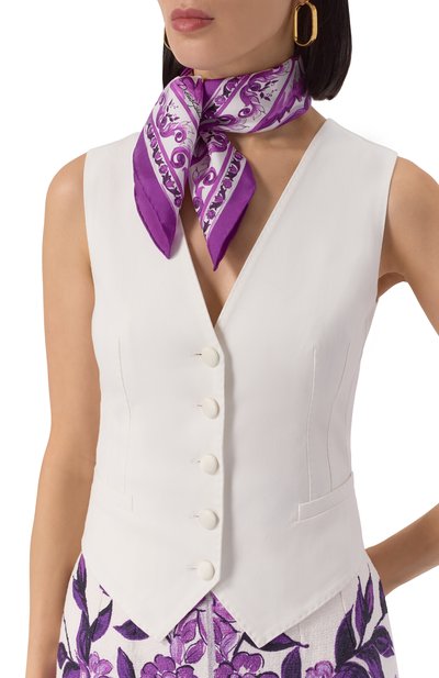 Платок из шелкового твила в горох может стать акцентом в образе. На принадлежность аксессуара марке указали мотивом Chez Valentino вдоль края.