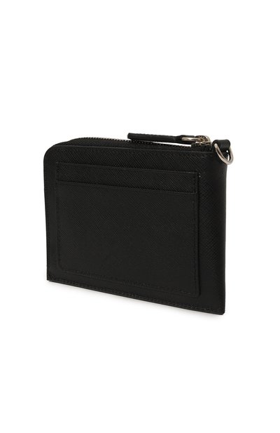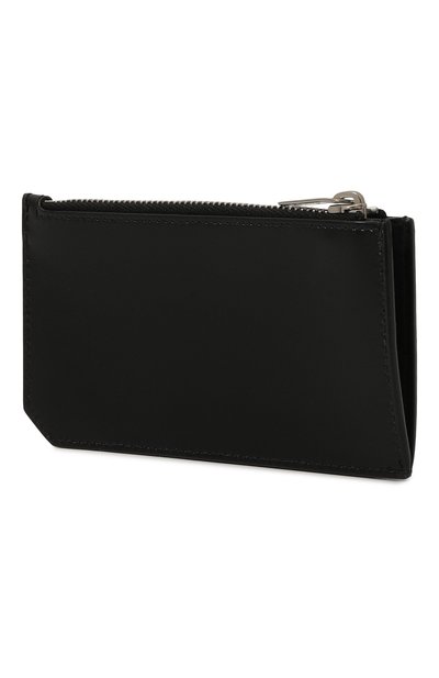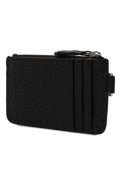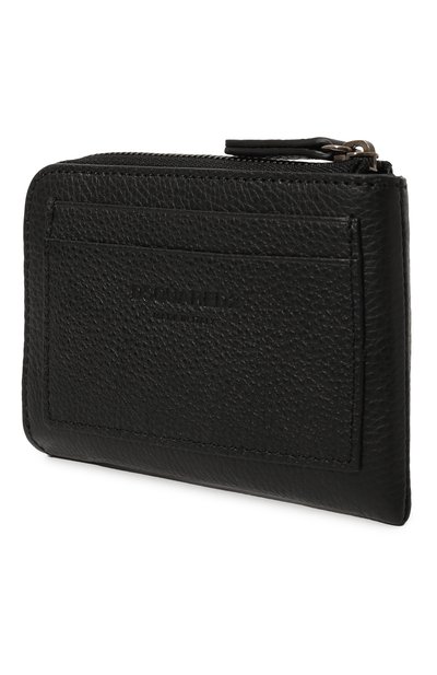 Футляр с пятью карточными слотами и отсеком на молнии изготовили из зернистой кожи. Картхолдер украсили металлической эмблемой VLogo Signature.