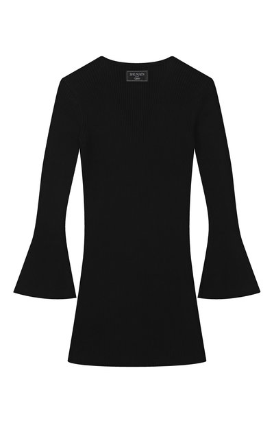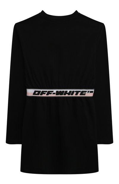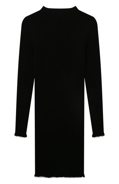Платье с высокой горловиной и вырезами, открывающими плечи, выполнили из эластичного хлопкового трикотажа. Принадлежность модели марке обозначили вышитым контрастным логотипом спереди.