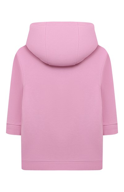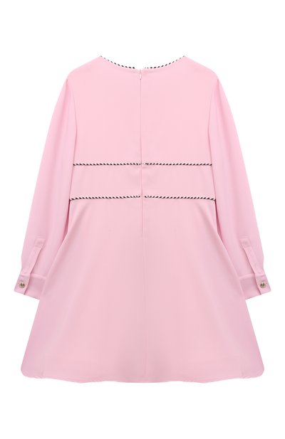 Платье с воротником-стойкой и вырезами на плечах выполнили из хлопкового трикотажа стрейч. Спереди модель украсили вышивкой с махровым логотипом марки.
