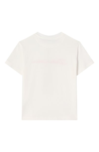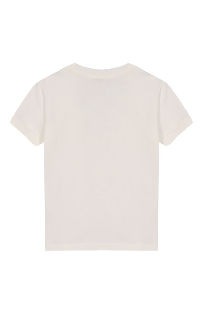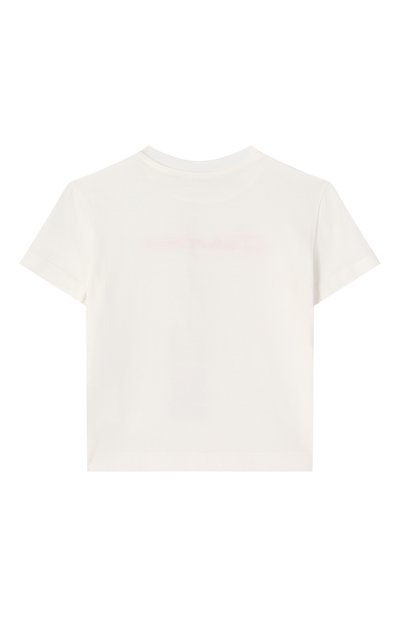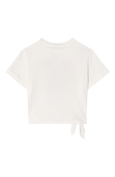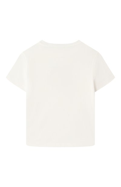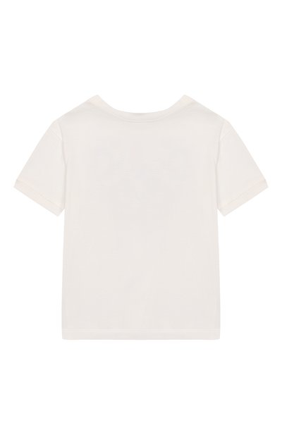 Футболку с контрастным логотипом украсили контурным изображением медвежонка. Модель с круглой горловиной в рубчик сшили из хлопкового трикотажа.
