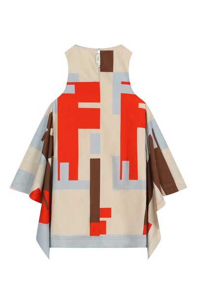 Платье с ярким фирменным паттерном выполнили из чистого хлопка. Модель с клиновидными вставками по бокам застегивается пуговицей на каплевидном вырезе сзади.