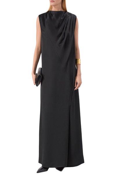Платье без рукавов. Обхват груди 100 см, обхват талии 106 см, обхват бёдер 110 см, длина изделия по спинке 101 см.