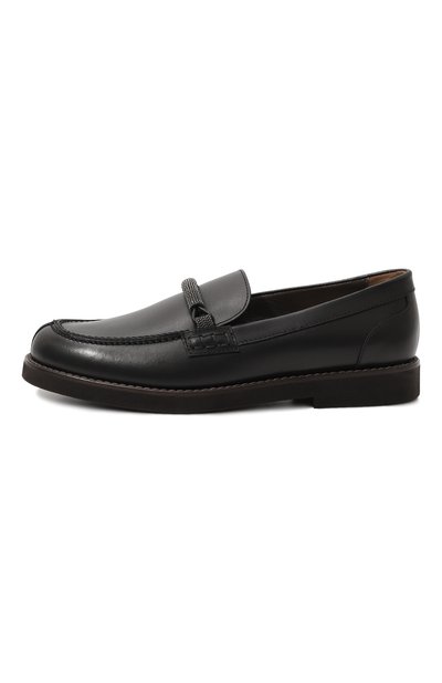 Лоферы с рельефным швом, повторяющим форму мыса, выполнили из кожи. Модель на массивной подошве с протектором украсили пряжкой с монограммой DG на союзке.