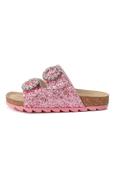 Союзку шлепанцев из телячьей кожи у красили принтом Majolica и логотипом марки. Пару с брендированной формованной стелькой установили на широкую полимерную подошву.